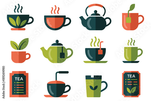 Vektorová sada populárních nápojů. Silná káva, horký čaj, alkoholické koktejly a rajčatová šťáva. Oblíbené nealkoholické nápoje. Plochý design
