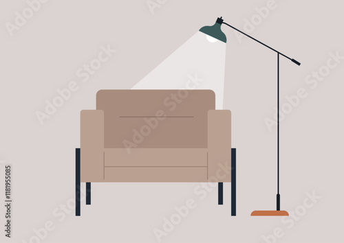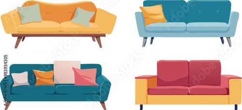 Vektorová sada plakátů, bannerů s prvky domácího interiéru v plochém stylu. Místo k odpočinku, hala, domov