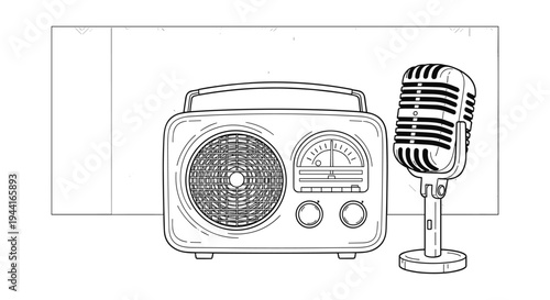 Vektorová sada rozhlasových a hudebních štítků ve vintage stylu izolovaná na bílém pozadí. Designové prvky a ikony