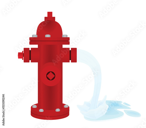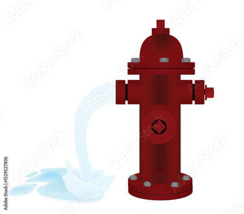 Vektorová sada červených požárních hydrantů izolovaných na bílém pozadí. Realistické 3D objekty pro městské hasičské oddělení.
