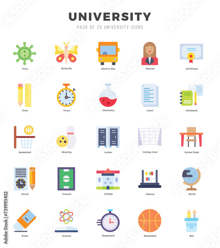 Vektorová sada ikon školního vzdělávání v tenkém stylu. Fyzika, chemie, biologie a další předměty. Webové rozhraní a ikona mobilní webové aplikace. Obrázek návrhu obrysu