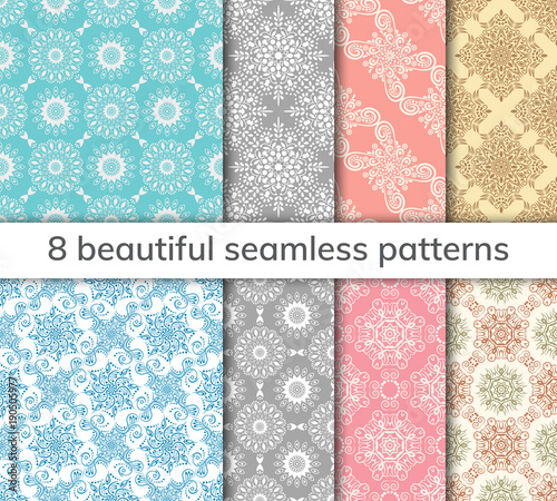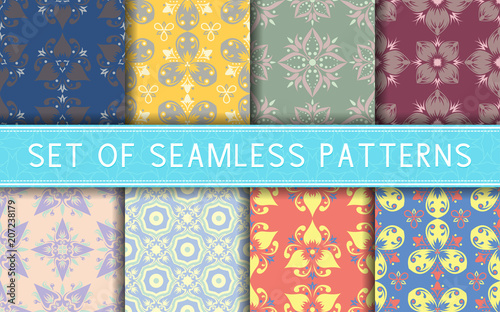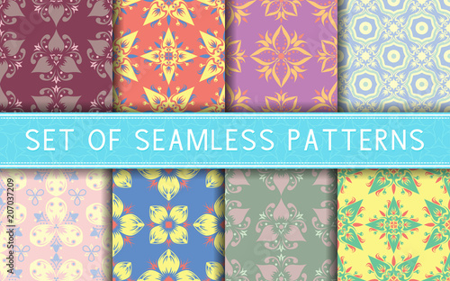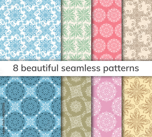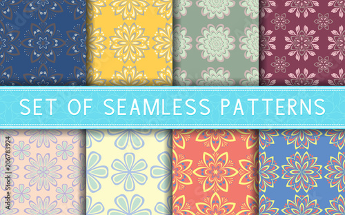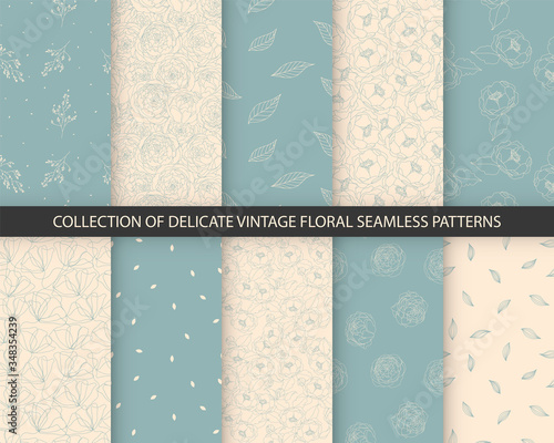 Vektorová sada bezešvých květinových vzorů. Dekorativní květiny a designové prvky pro textil, obaly na knihy, výroba, pozvánky, pohlednice, tisk, dárkové balení.