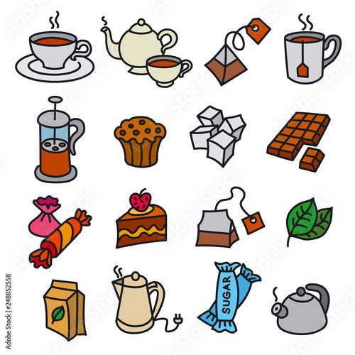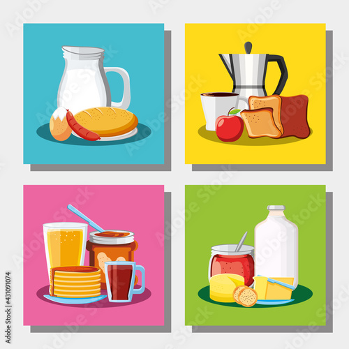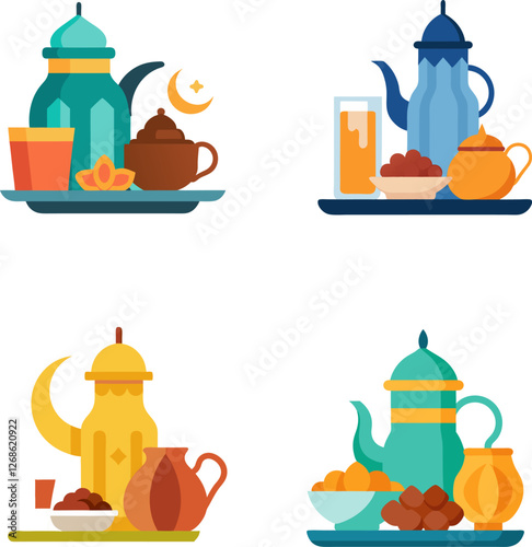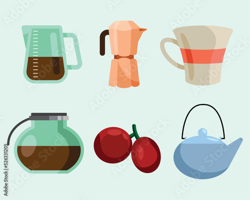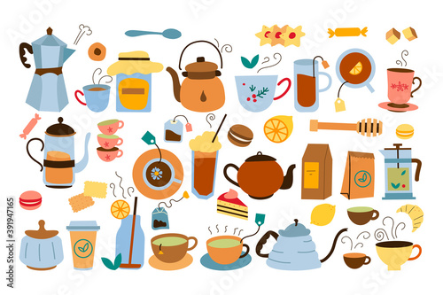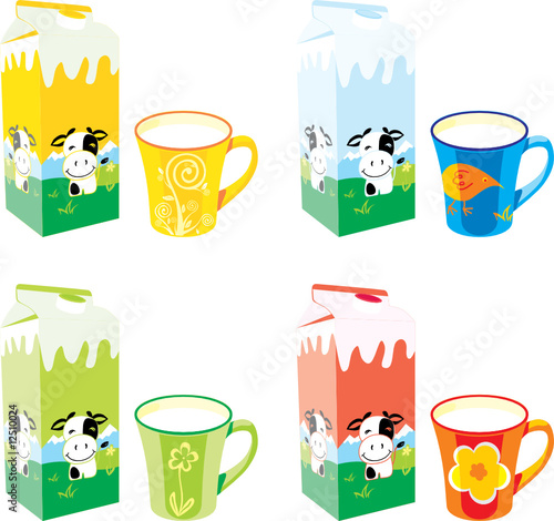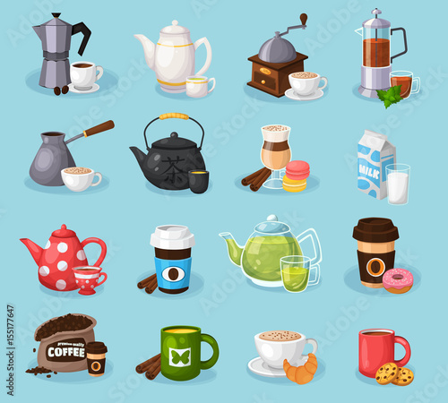 Vektorová sada nealkoholických nápojů. Čerstvé mléko, šťavnatá limonáda, sladká soda a minerální voda. Oblíbené nealkoholické nápoje. Plochý design