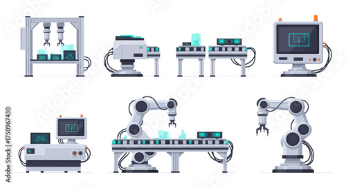 Vektorová sada konstrukčních prvků konceptu průzkumu vesmíru izolovaných na bílém pozadí. Personál řídícího střediska mise, astronauti, satelit, vesmírná základna a Vesmírný rover v plochém stylu.