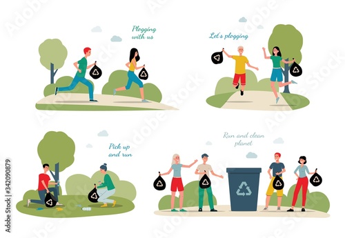 Vektorová ilustrace krásných žen cvičících, silných a svalnatých mužů sportujících. Školení mimo lidi symboly, ikony izolované na bílém pozadí. Plochý design.