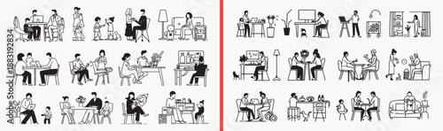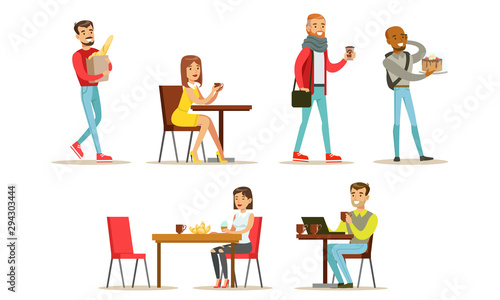 Vektorová sada pracovníků veterinární kliniky na pracovišti, klienti se svými domácími mazlíčky izolovaní na bílém pozadí. Designové prvky, ikony v plochém stylu.