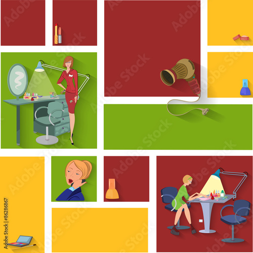 Vektorová sada konceptů služeb veterinární kliniky, bannery. Očekávání, narození, diagnostika a inspekce konstrukční prvky v plochém stylu.