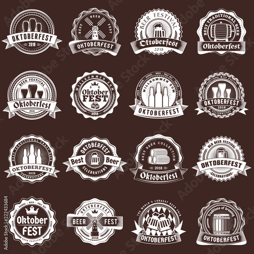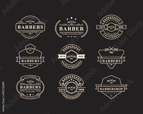 Vektorová sada emblémů autoservisu, odznaků, štítků, loga v retro stylu. Vintage tabule auto repair, mytí aut, symboly čerpacích stanic, ikony, typografické designové prvky.