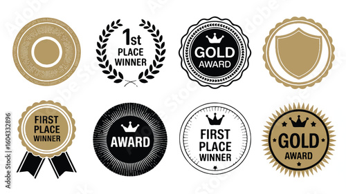 Vektorová sada pivních etiket, emblémů, odznaků v retro stylu. Vintage černé a zlaté barvy řemeslné pivo symboly, ikony, typografie designové prvky na bílém pozadí.