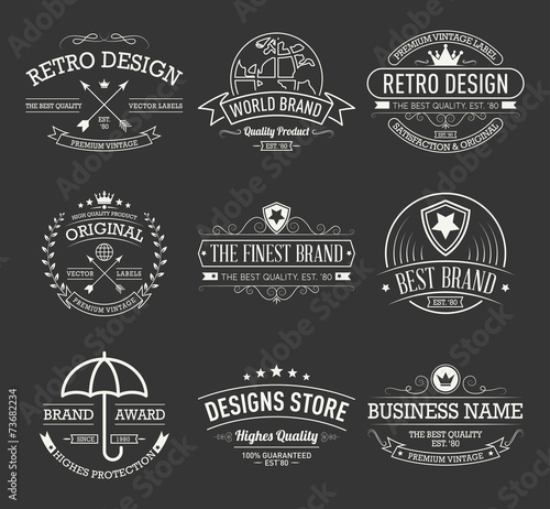 Vektorová sada motocyklových emblémů, odznaků, štítků, loga v retro stylu. Vintage tabule motocykl opravy, Motor club symboly, ikony, typografie designové prvky.