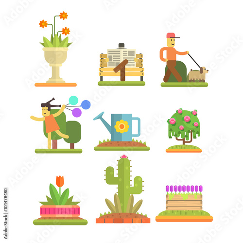 Vektorová sada konceptů dobrovolných organizačních služeb plakáty, bannery. Přečtěte si pohádky, distribuci potravin, Sbírejte odpadky, designové prvky pro procházky se psem v plochém stylu.