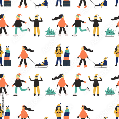 Vektorová sada deštivých, větrných, zasněžených povětrnostních konceptů plochých designových prvků, ikon izolovaných na bílém pozadí. Postavy chodící ve vánici, bouři a dešti.