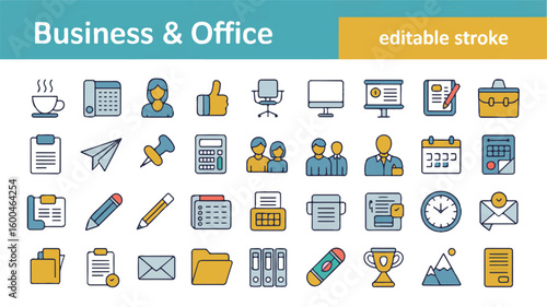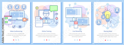 Vektorová sada webových vývojových a kancelářských ikon ve stylu tenké čáry. Webové rozhraní a ikona mobilní webové aplikace. Obrys design ilustrace