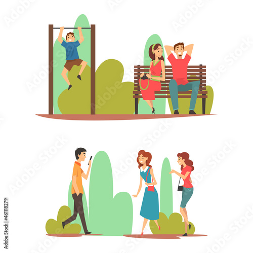 Vektorová sada plakátů svatebního obřadu. Otec a nevěsta, kněz, ženich a svatební taneční ploché designové prvky.