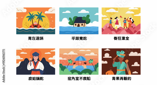 Vektorová sada divokých a domácích koní. Divocí koně cválají po horách, dostihy postrojů, jízda na koni zdarma a americké rodeo. Plochý design