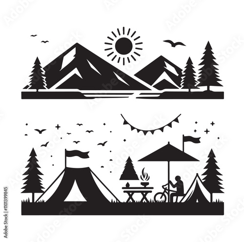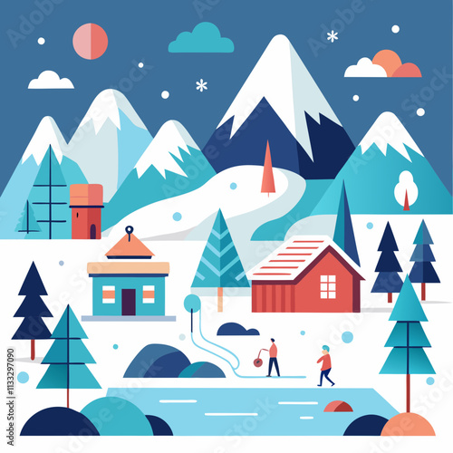 Vektorová sada plakátů divoké severní krajiny, bannery. Polární záře, arktická zvířata a Eskymáci mají ploché designové prvky.