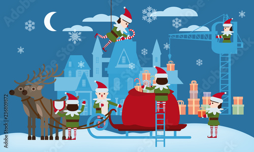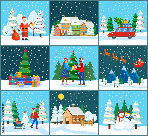 Vektorová sada zimních aktivit lidí koncept designových prvků v plochém stylu. Znaky sáňkování, hraní sněhové koule, takže sněhulák a sníh anděl, zúčtování auto ze sněhu, nakupování. Zimní Panoráma města.