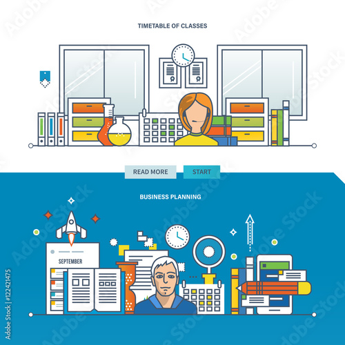 Vektorová sada pracovních horizontálních bannerů. Veřejné práce, dodávka nábytku a opravy v kuchyni plochého stylu designových prvků.