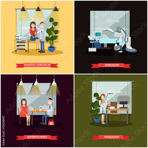 Vektorová sada pracovních interiérových plakátů, bannerů. Instalatérské, elektrické, plynové a pohyblivé firemní služby Ploché designové prvky.