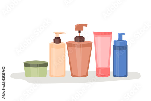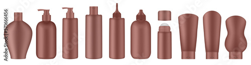 Sportovní výživa kontejner balení mock up set. Vektorové realistické ilustrace prázdných červených plastových nádob, fóliových obalů, lahví na vodu, koktejlových třepaček izolovaných na bílém pozadí.