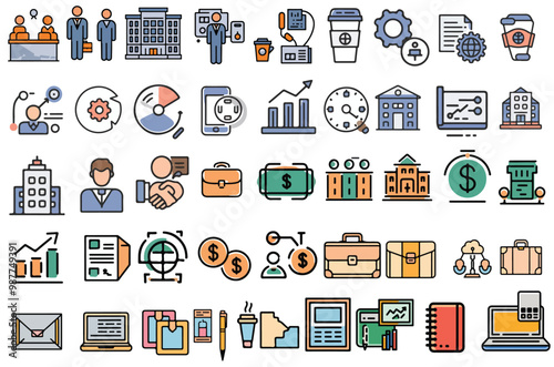 Vektorový bezproblémový vzor s bankovními a finančními symboly. Tenká linie umění plochý styl designu bankovní produkty pozadí, tapety.