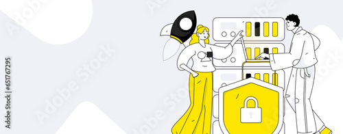 Maso tvar vektorové plakát banner šablona. Bbq grilované maso, ryba, omáčka, chilli, pivo a grilovací zařízení thin line art flat style designové prvky, ikony pro webové bannery a tištěné materiály.