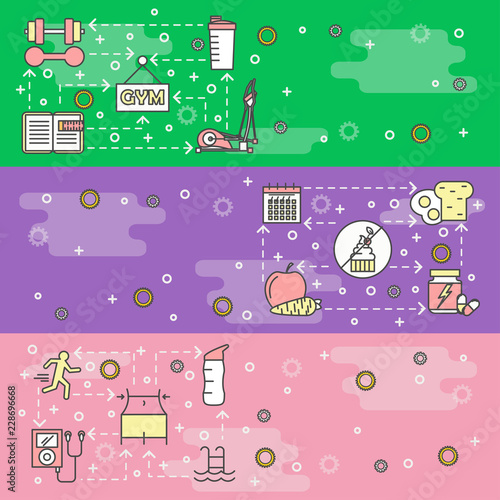 Krása vektor web banner šablony set. Domácí péče, kosmetička, stylista koncept tenká linie umění plochý styl designové prvky.