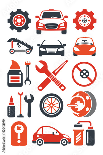 Vektorové bezešvé vzor s autoservisem, Auto shop opravy a údržba symboly. Tenká čára umění plochý styl designu auto Service pozadí, tapety.
