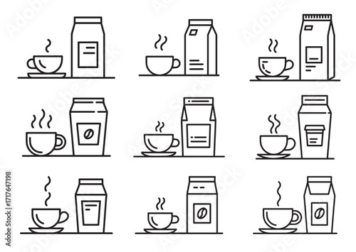 Vektorový Bezešvý vzor se zařízením na výrobu kávy a příslušenstvím. Tenká linie umění plochý styl design káva vaření pozadí, tapety.