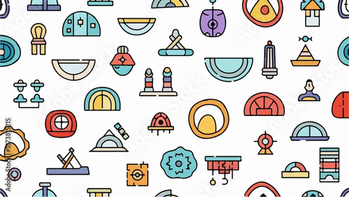 Vektorový Bezešvý vzor s kuchyňskými spotřebiči, kuchyňským nádobím, potravinami, vínem. Tenká linie umění plochý styl design vaření pozadí, tapety.