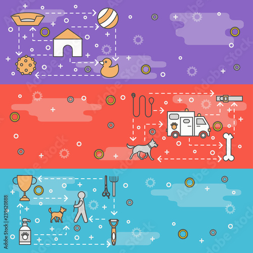 Ekologie vektorový web banner šablona set. Životní prostředí, obnovitelná větrná zelená energetická koncepce. Tenké linie umění plochý styl designové prvky, ikony, kopírování prostoru.