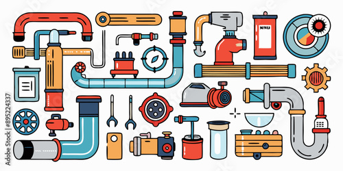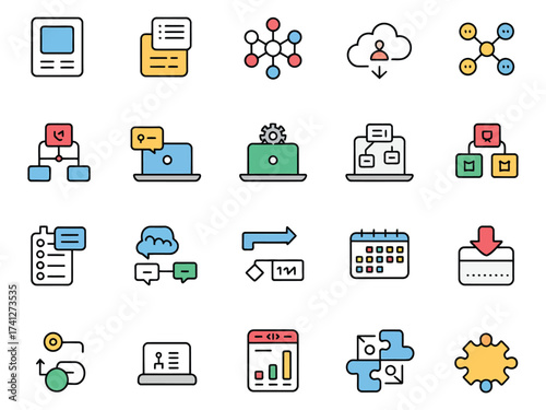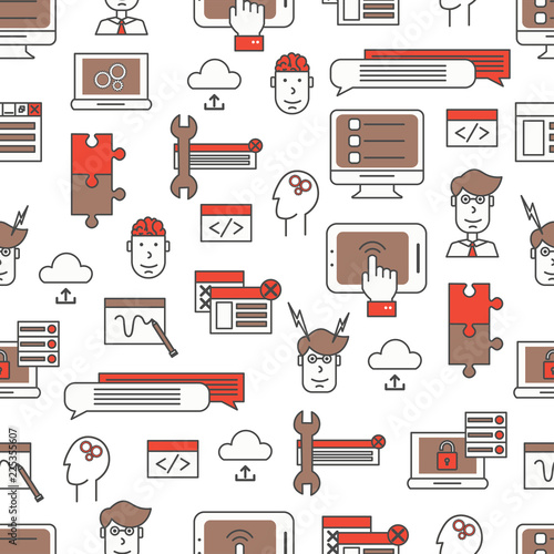 Vektorový Bezešvý vzor s programováním, symboly informatiky, konstrukční prvky. Tenká čára umění plochý styl designu informační technologie pozadí, tapety.