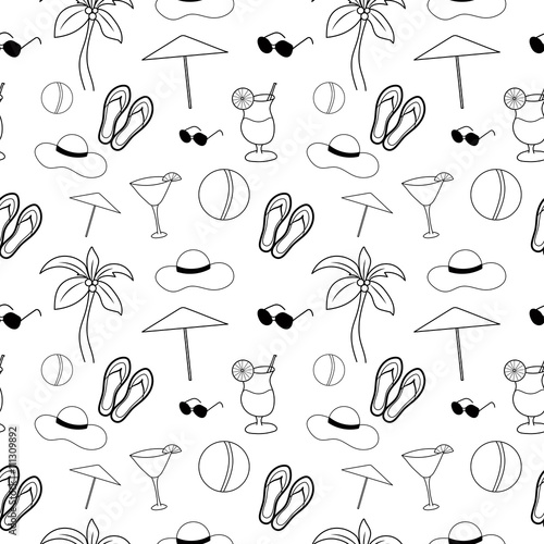 Vektorový bezproblémový vzor s letními a zimními aktivitami, sportem a rekreací, ikonami her pro volný čas. Tenká linie umění plochý styl designu pozadí, tapety.