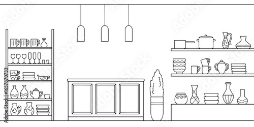 Obývací pokoj plakát banner šablona. Obývací pokoj interiér s nábytkem vektorové tenké linie umění plochý styl designové prvky, ikony pro webové bannery a tištěných materiálů.