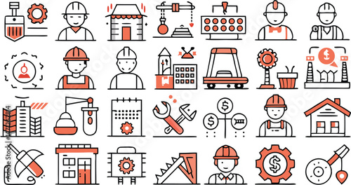 Vektorový Bezešvý vzor s výrobou těžkého průmyslu, elektrárna s Kouřovody, symboly těžby fosilních paliv. Tenká linie umění plochý styl design produkce pozadí, tapety.