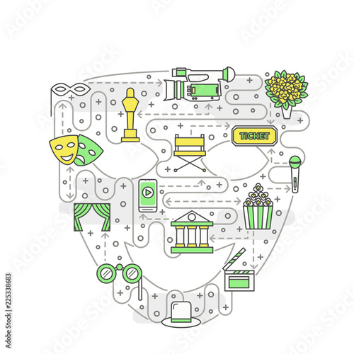 Audio disc tvar vektoru plakát banner šablona. Rozhlasové stanice hudební zpravodajství vysílání. Tenké čáry art ploché ikony pro webové bannery, tištěné materiály.