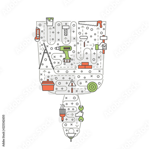 Stavební stěrkou tvar plakát banner šablona. Ruční práce nástroje pro výstavbu, opravy domů, renovace. Vektorové tenké čáry umění plochý styl designové prvky, ikony pro webové stránky bannery, tištěné materiály.