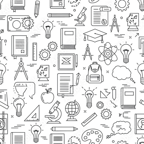 Vektorový bezproblémový vzor s ikonami fitness, diety, vybavení tělocvičny. Tenká linie umění plochý styl designu hubnutí pozadí, tapety.