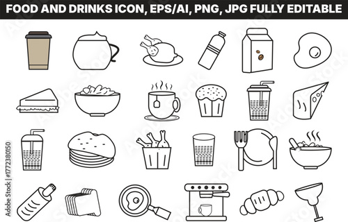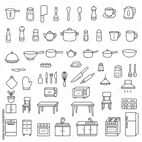 Sada ikon kuchyňského náčiní. Vektorové tenké linie umění plochý styl designové prvky izolované na bílém pozadí.