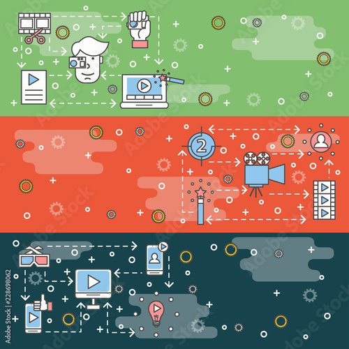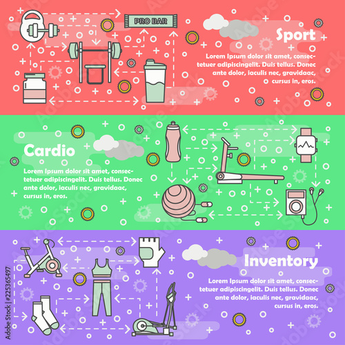 Pracovníci vektorové web banner šablony set. Elektrikář, instalatér, stavitel dělníci nástroje a zařízení tenká linie umění plochý styl designové prvky, ikony, kopírovat prostor.