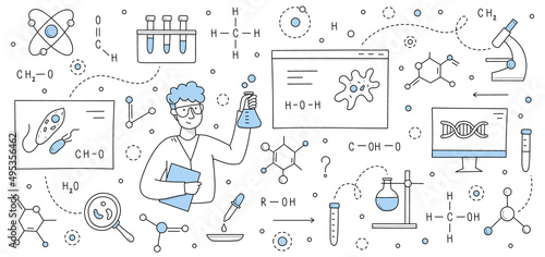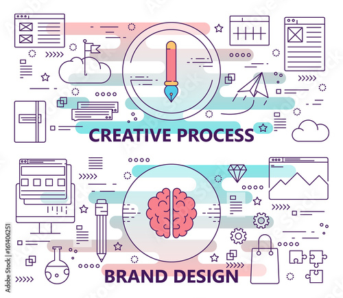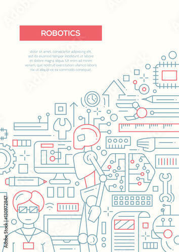 Zubař reklamní plakát banner šablona. Zub, implantát, zubní pasta, zubní kartáček, zubní zařízení. Vektorové tenké čáry umění plochý styl designové prvky, ikony pro webové stránky banner, tištěné materiály.
