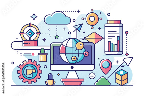 Business finance plakát banner šablona. Vector thin line art flat style design s kancelářskými pracovníky vtipné kreslené postavičky, obchodní symboly, ikony pro webové stránky bannery a tištěných materiálů.