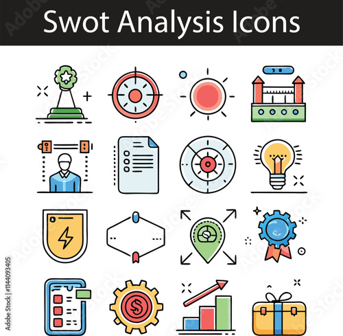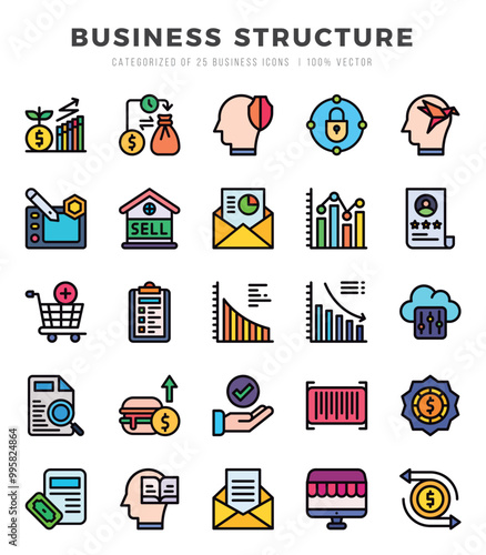 Vektorová sada marketingových a startupových konceptů bannerů. Lineární graf, schéma pro společnost nabízející inovativní produkt, servis. Tenká čára plochý design infographic položky, ikony pro web, marketing, tisk.