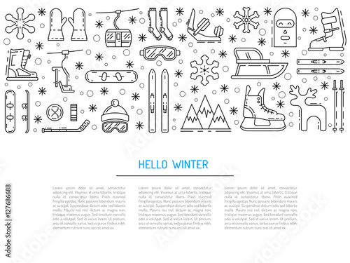 Zahradnictví reklamní plakát banner šablony. Zahradní nářadí, vybavení a oblečení. Vektorové tenké čáry umění plochý styl designové prvky, ikony pro webové stránky bannery, tištěné materiály.