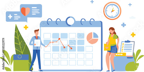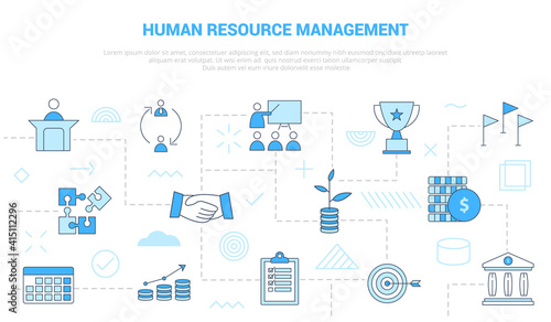 Obchodní týmová práce plakát banner šablona. Vector thin line art flat style design s kancelářskými pracovníky vtipné kreslené postavičky, obchodní symboly, ikony pro webové stránky bannery a tištěných materiálů.