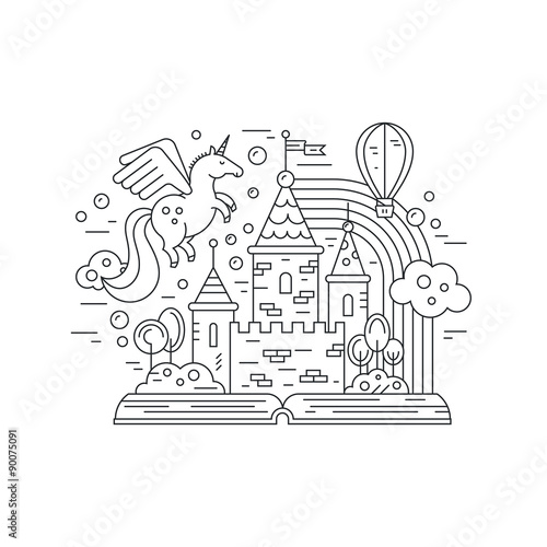 Horkovzdušný balón ve tvaru plakát banner šablony. Dobrovolník vector thin line art plochý styl designové prvky, ikony pro webové stránky bannery a tištěných materiálů.