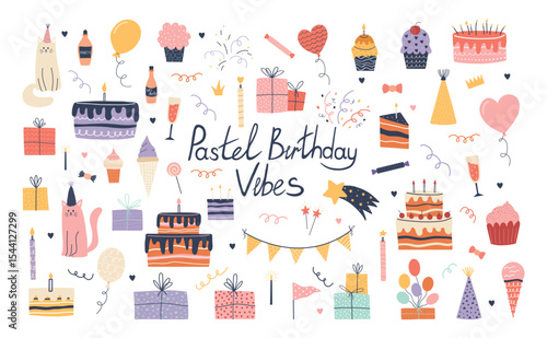 Ženy den reklamní plakát banner šablony. Dovolená dort, květiny, dárky, šampaňské, balónky atd. Vektorové tenké čáry art ploché styl designové prvky, ikony pro webové stránky bannery a tiskovin.