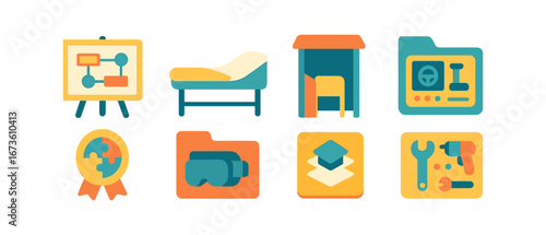 Vektorový pohled shora školní koncept ilustrace. Učitel a školní děti na lekci ve třídě. Plochý design.