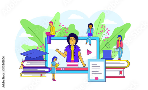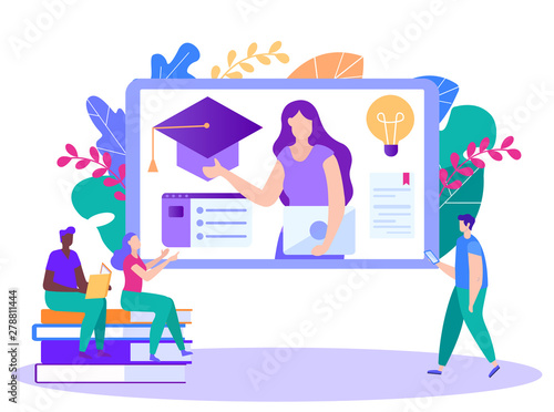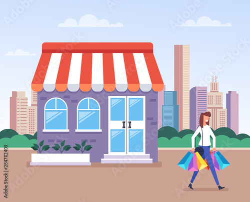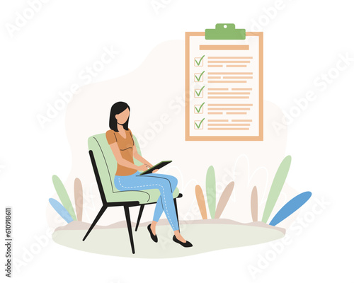 Street cafe concept vektorové ilustrace v plochém stylu. Muž a žena sedí u stolu na verandě. Žena čte menu.