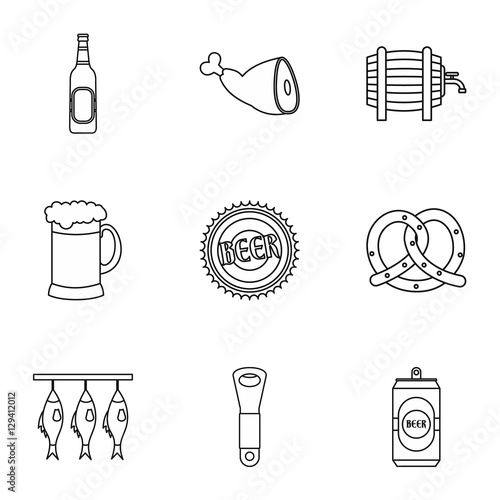 Vektorové sada historických pivních symbolů, ikony izolovaných na bílém pozadí. Černé šablony pro loga a tisk.